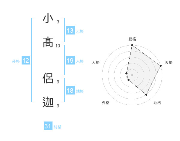 小髙 侶迦さんを姓名の画数から五運を鑑定
