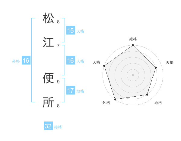松江 便所さんの外格は16画の5点!