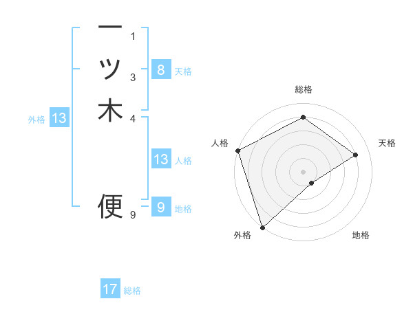 一ツ木 便さんの外格は13画の5点!