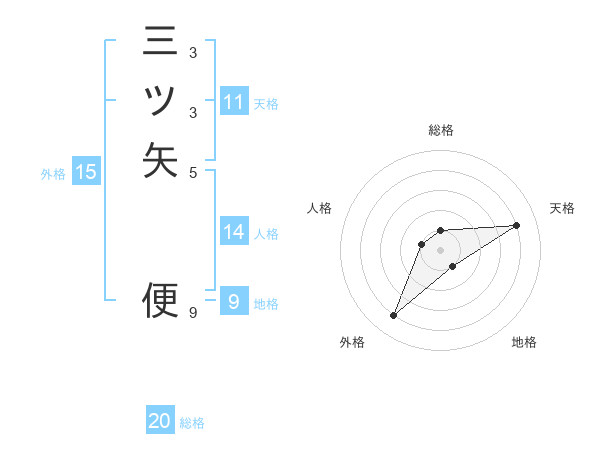 三ツ矢 便さんを姓名の画数から五運を鑑定
