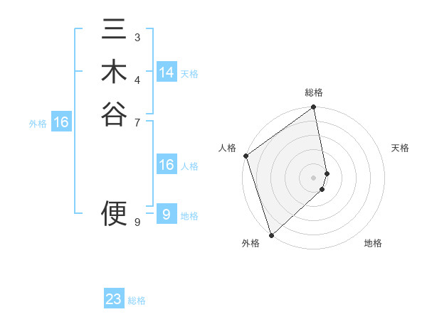 三木谷 便さんの外格は16画の5点!