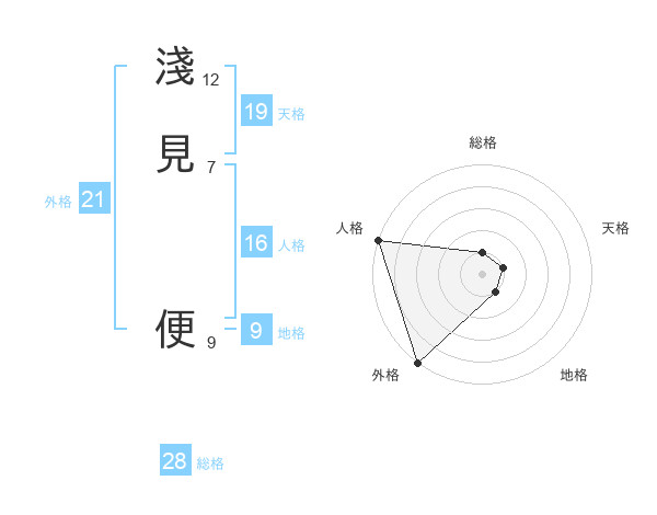 淺見 便さんの外格は21画の5点!