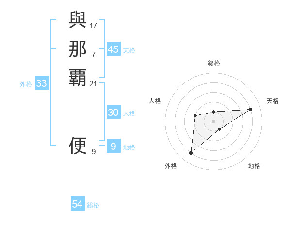 與那覇 便さんの総格は54画の1点!