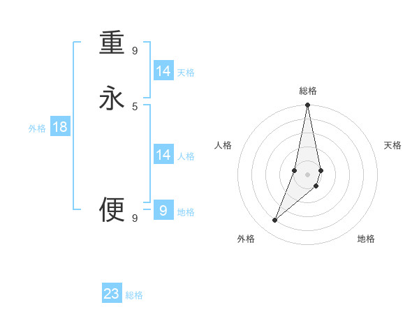 重永 便さんの総格は23画の5点!