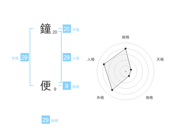 鐘 便さんの総格は29画の4点!
