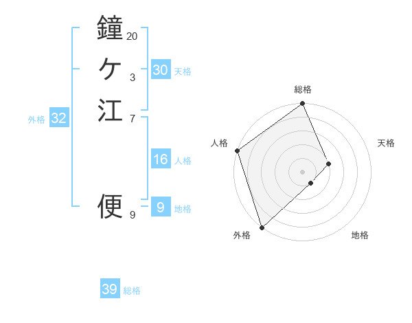 鐘ケ江 便さんの外格は32画の5点!