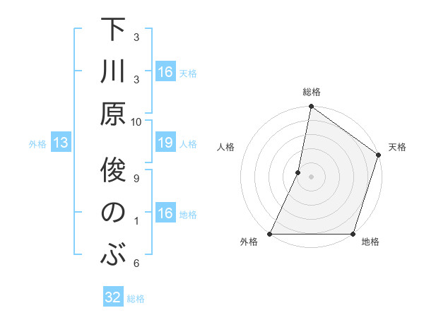下川原 俊のぶさんを姓名の画数から五運を鑑定