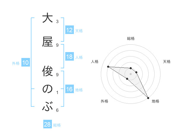 大屋 俊のぶさんの地格は16画の5点!