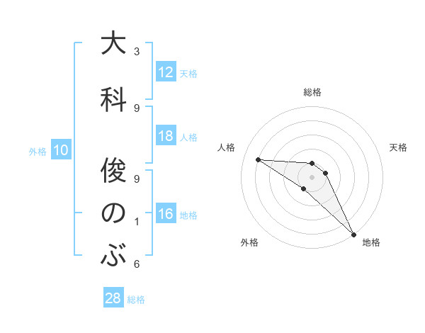大科 俊のぶさんを姓名の画数から五運を鑑定