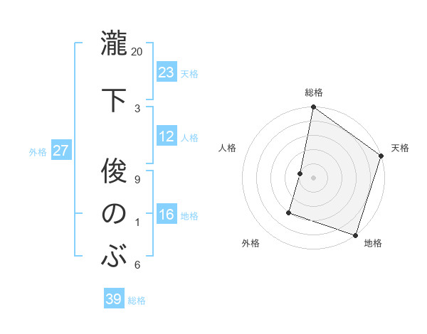 瀧下 俊のぶさんの総格は39画の5点!