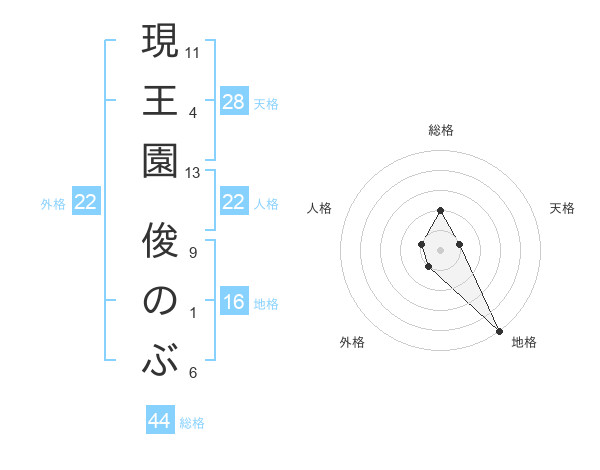 現王園 俊のぶさんの総格は44画の2点!