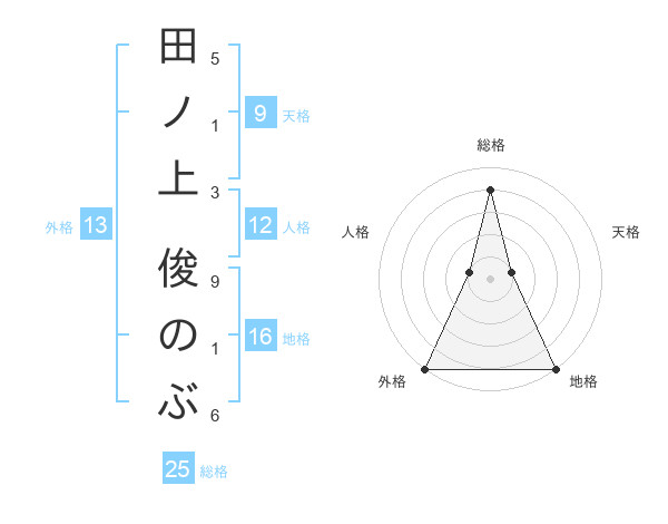 田ノ上 俊のぶさんを姓名の画数から五運を鑑定