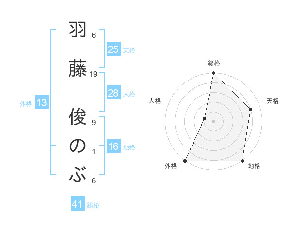 羽藤 俊のぶさんの外格は13画の5点!