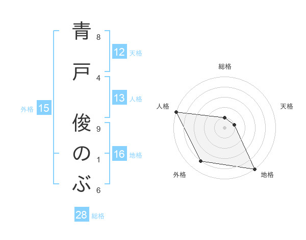 青戸 俊のぶさんを姓名の画数から五運を鑑定
