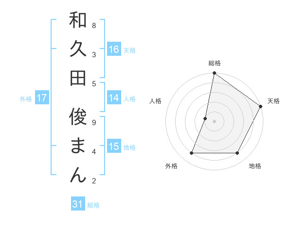 和久田 俊まんさんの総格は31画の5点!