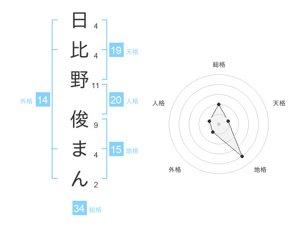 日比野 俊まんさんの総格は34画の2点!