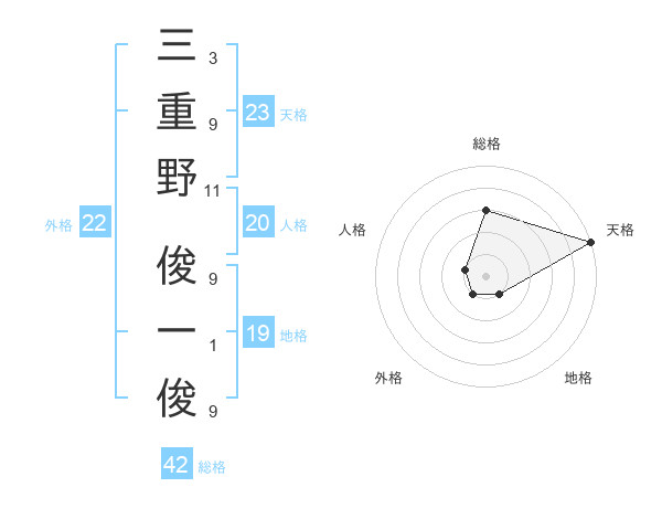 三重野 俊一俊さんを姓名の画数から五運を鑑定