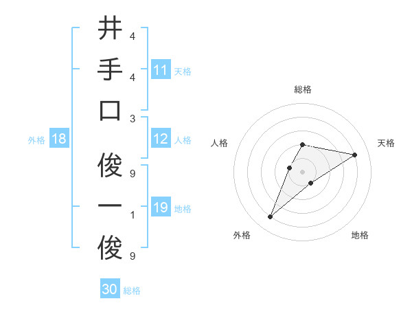 井手口 俊一俊さんを姓名の画数から五運を鑑定