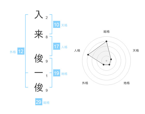 入来 俊一俊さんを姓名の画数から五運を鑑定