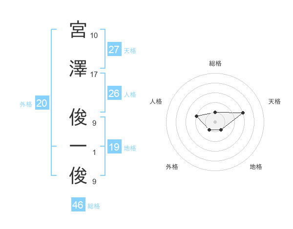 宮澤 俊一俊さんの総格は46画の1点