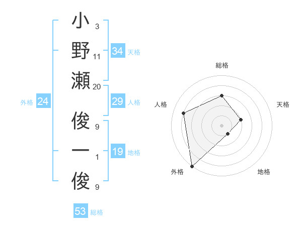 小野瀬 俊一俊さんを姓名の画数から五運を鑑定