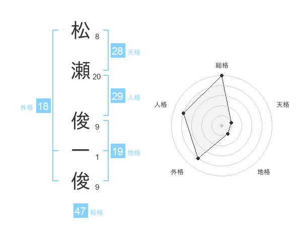 松瀬 俊一俊さんの総格は47画の5点!