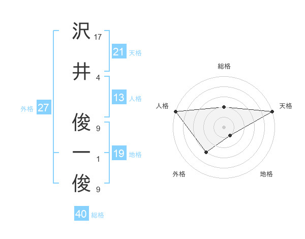 沢井 俊一俊さんを姓名の画数から五運を鑑定
