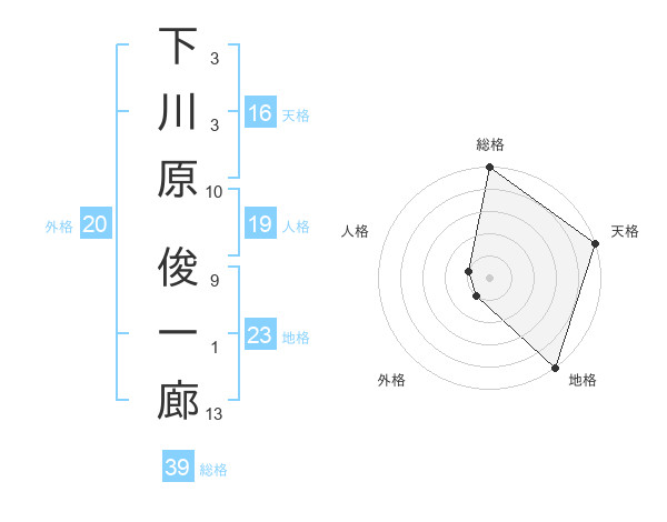 下川原 俊一廊さんを姓名の画数から五運を鑑定