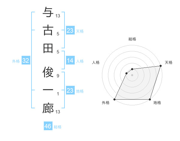与古田 俊一廊さんを姓名の画数から五運を鑑定