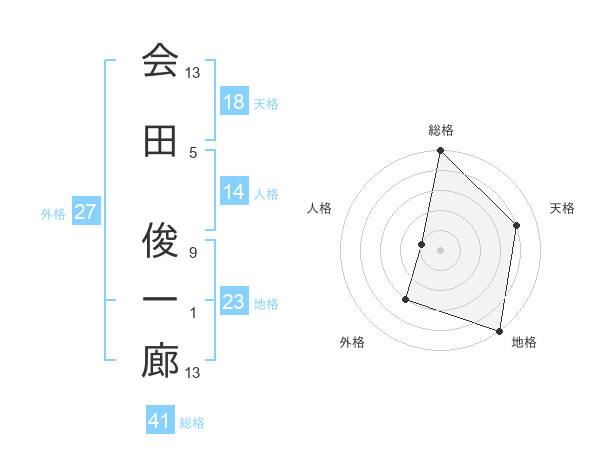 会田 俊一廊さんの総格は41画の5点!