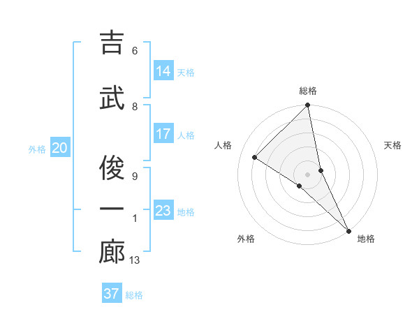 吉武 俊一廊さんを姓名の画数から五運を鑑定