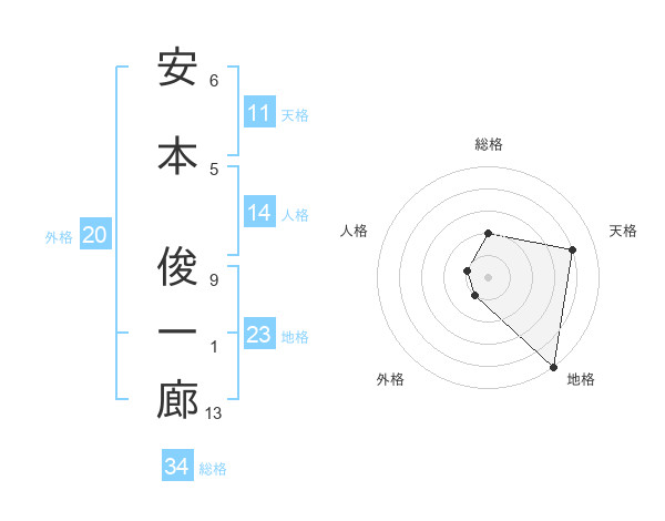 安本 俊一廊さんを姓名の画数から五運を鑑定