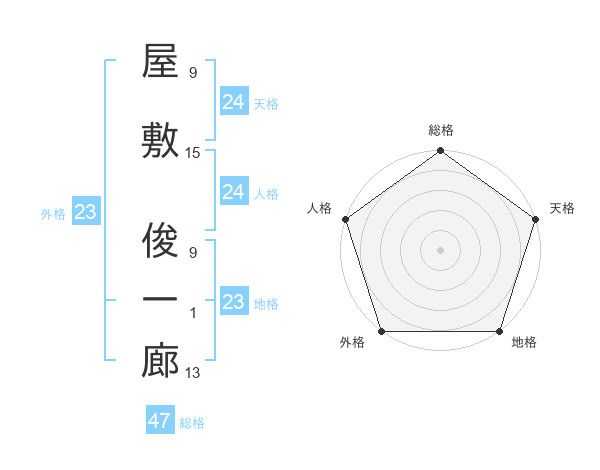 屋敷 俊一廊さんの総格は47画の5点!