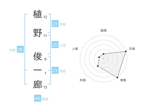 植野 俊一廊さんを姓名の画数から五運を鑑定