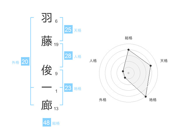 羽藤 俊一廊さんの地格は23画の5点!