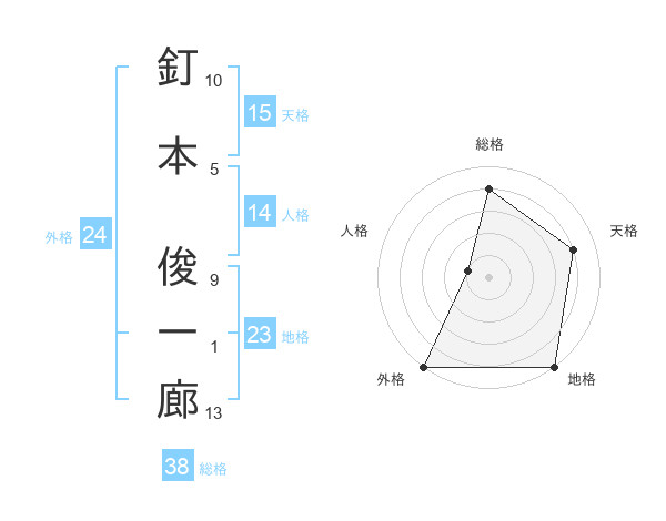 釘本 俊一廊さんを姓名の画数から五運を鑑定
