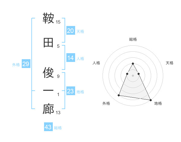 鞍田 俊一廊さんの総格は43画の2点!