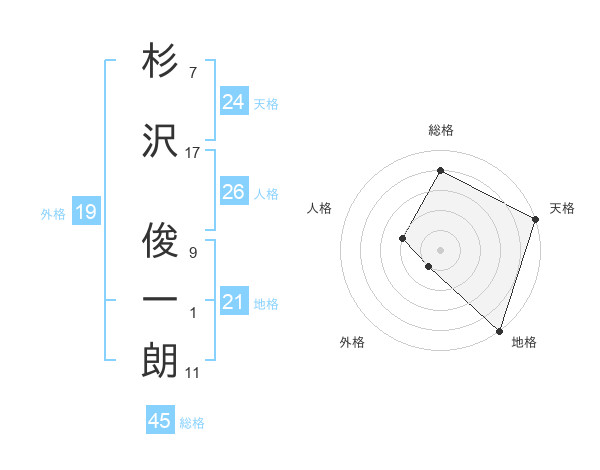 杉沢 俊一朗さんの天格は24画の5点!
