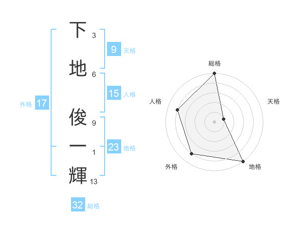 下地 俊一輝さんの総格は32画の5点!