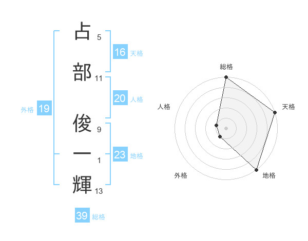 占部 俊一輝さんを姓名の画数から五運を鑑定