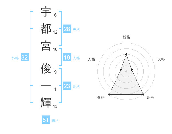 宇都宮 俊一輝さんを姓名の画数から五運を鑑定