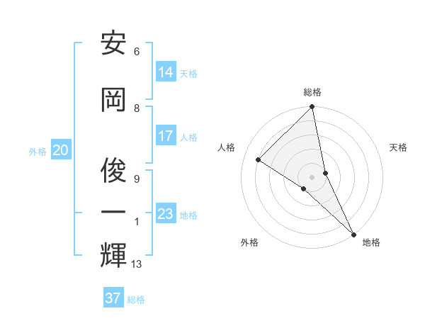 安岡 俊一輝さんを姓名の画数から五運を鑑定