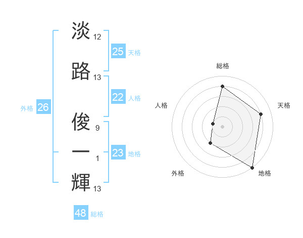 淡路 俊一輝さんを姓名の画数から五運を鑑定