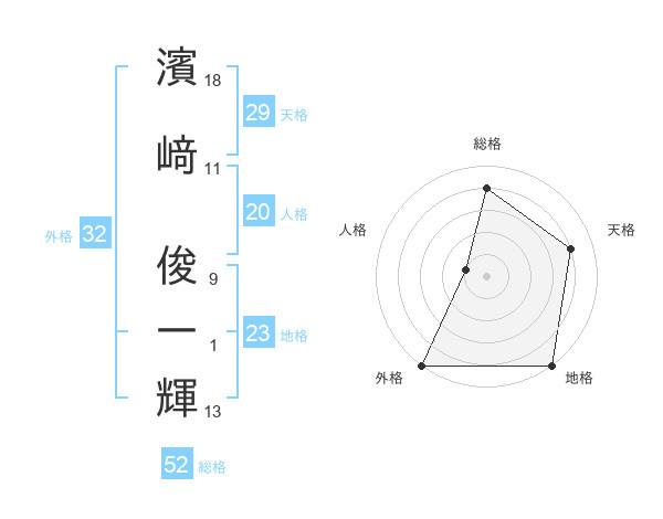濱﨑 俊一輝さんを姓名の画数から五運を鑑定