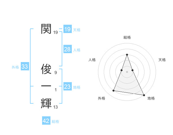 関 俊一輝さんを姓名の画数から五運を鑑定