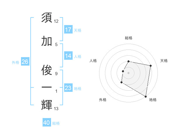 須加 俊一輝さんの総格は40画の2点!