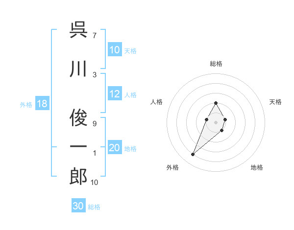 呉川 俊一郎さんの総格は30画の2点!