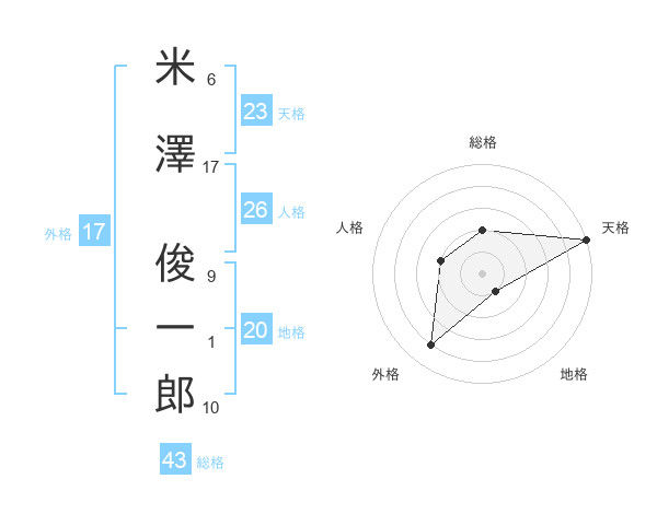 米澤 俊一郎さんの総格は43画の2点