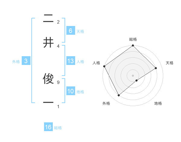 二井 俊一さんの天格は6画の4点!
