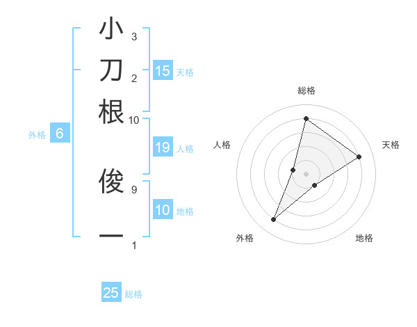 小刀根 俊一さんを姓名の画数から五運を鑑定